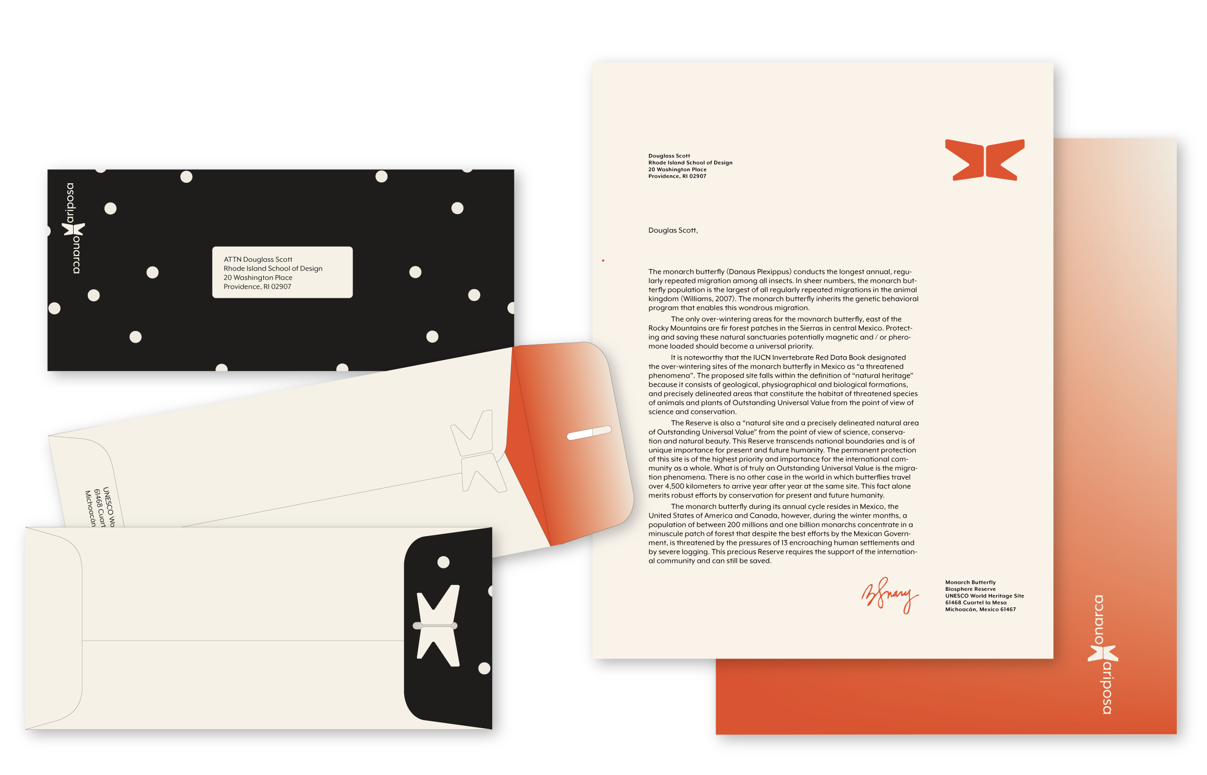 Brand identity project for the Monarch Butterfly Biosphere Reserve (Mariposa Monarca), a UNESCO World Heritage Site located in central Mexico.